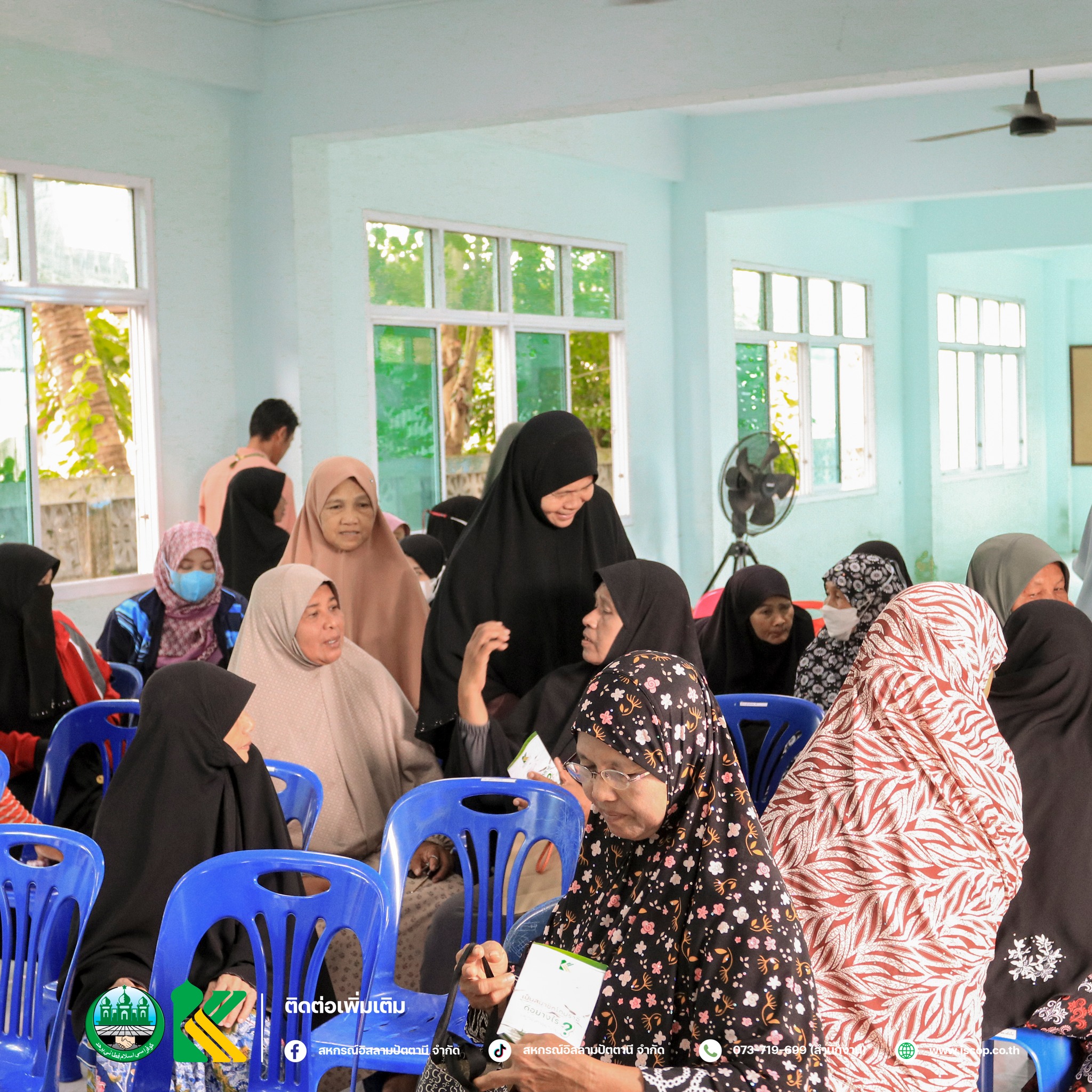 โดย นายมูฮำหมัดกิสตีย์ กีโต๊ะ ผู้จัดการสาขา พร้อมด้วยเจ้าหน้าที่ลงพื้นที่จัดประชุมกลุ่มเพื่อพบปะและทำความเข้าใจบทบาทและผลิตภัณฑ์ของสหกรณ์